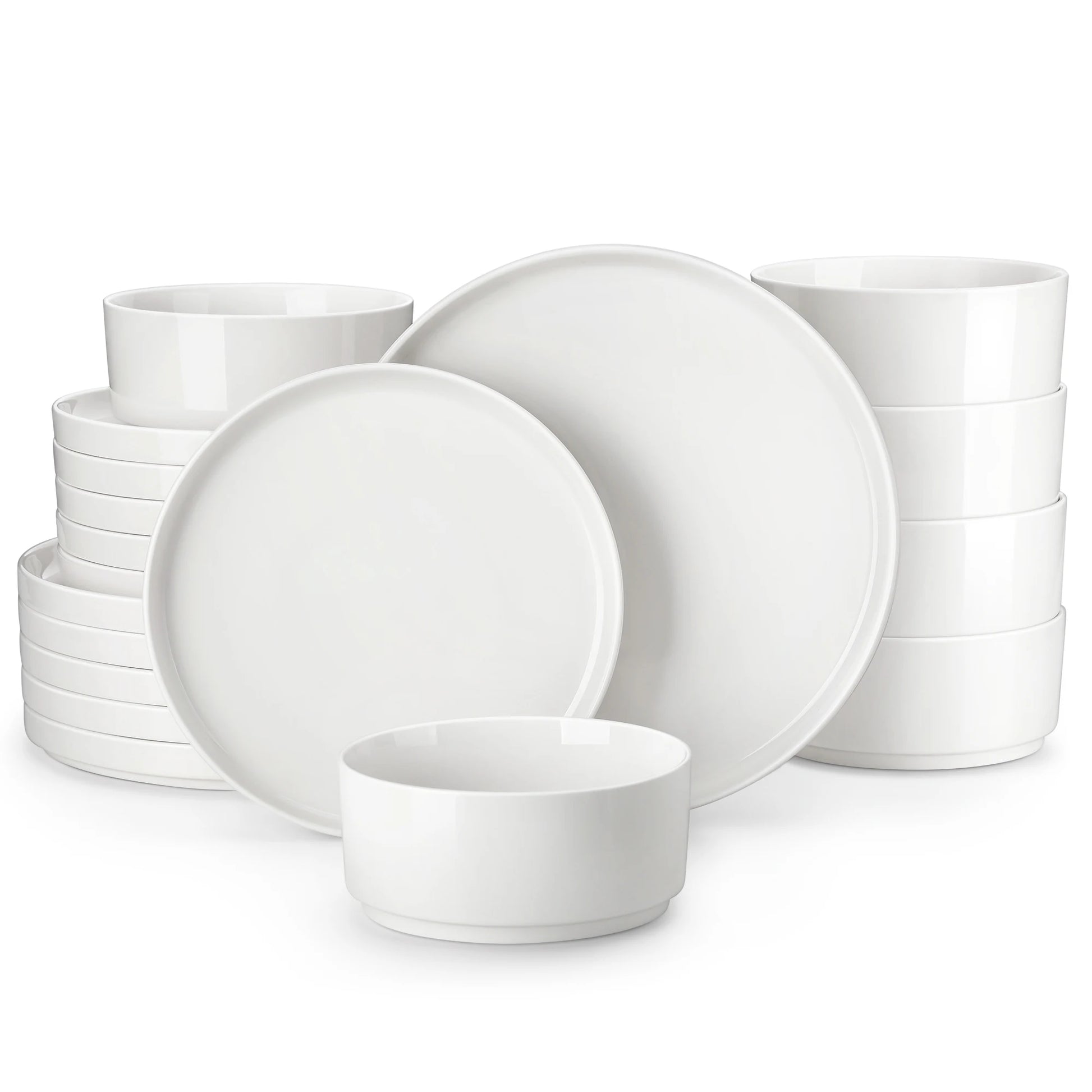 【CO JE V BALENÍ】Sada nádobí MALACASA, 24 kusů, pro 6 osob - obsahuje 6 talířů o průměru 10,25 palce, 6 salátových talířů o průměru 8,25 palce, 6 misek na těstoviny o objemu 42 oz a 6 misek na cereálie o objemu 26 oz. Servírujte různé pokrmy, včetně večeří, dezertů, salátů, polévek a předkrmů, a uspokojte tak své rozmanité potřeby.