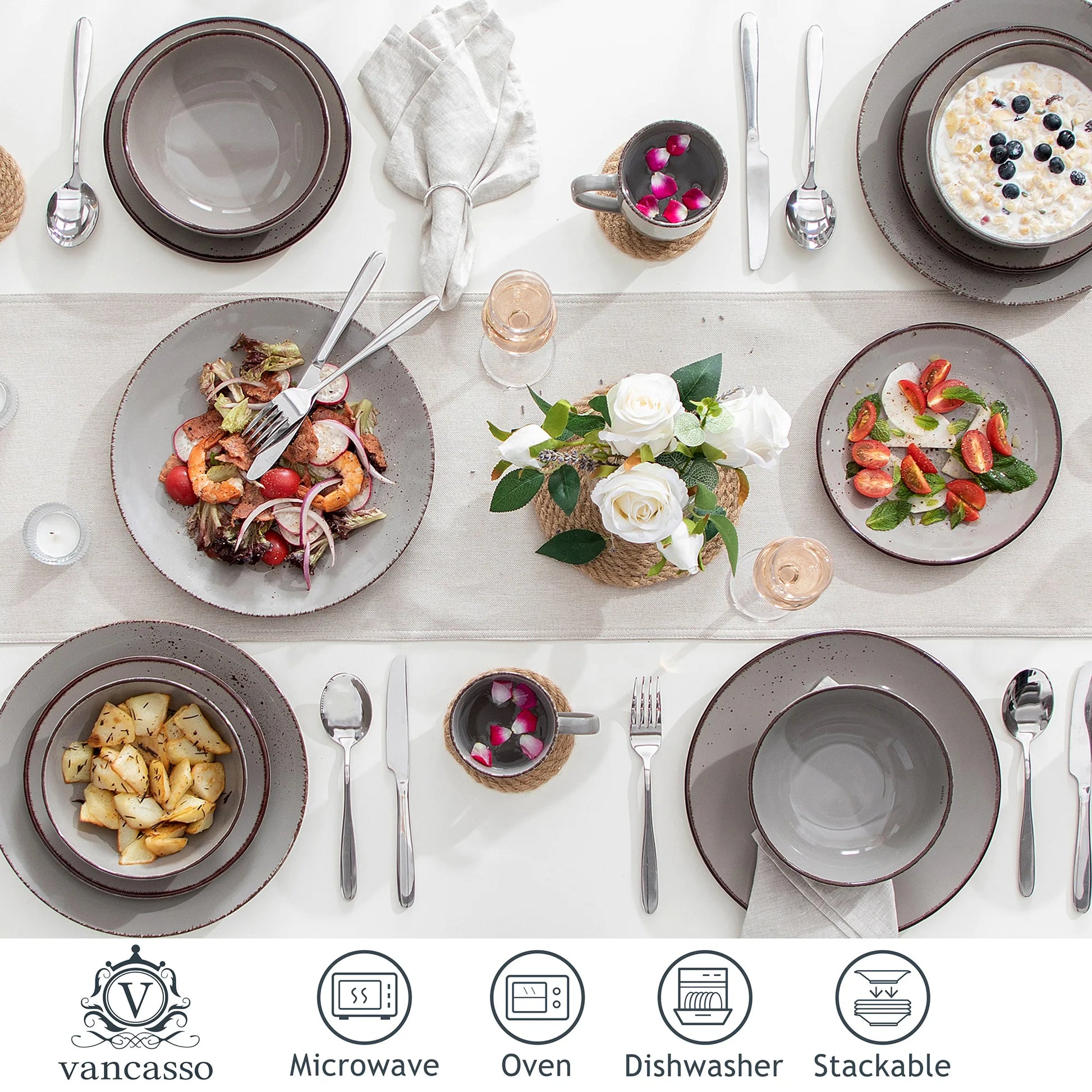 Sada nádobí z keramické keramiky, 16/32 kusů, šedá, Vancasso, s talířem/dezertním talířem/miskou o objemu 800 ml/hrnkem